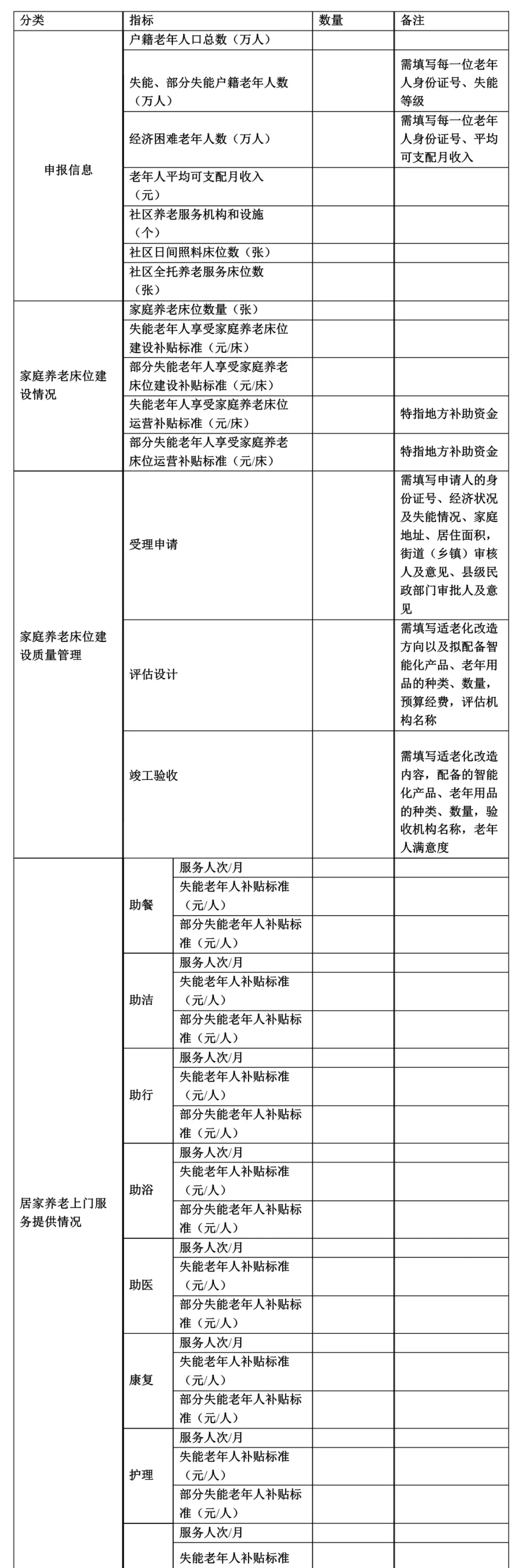 建设家庭养老床位、提供居家养老上门服务(以下简称两项重点任务)。